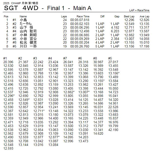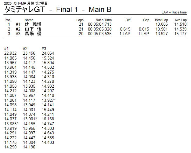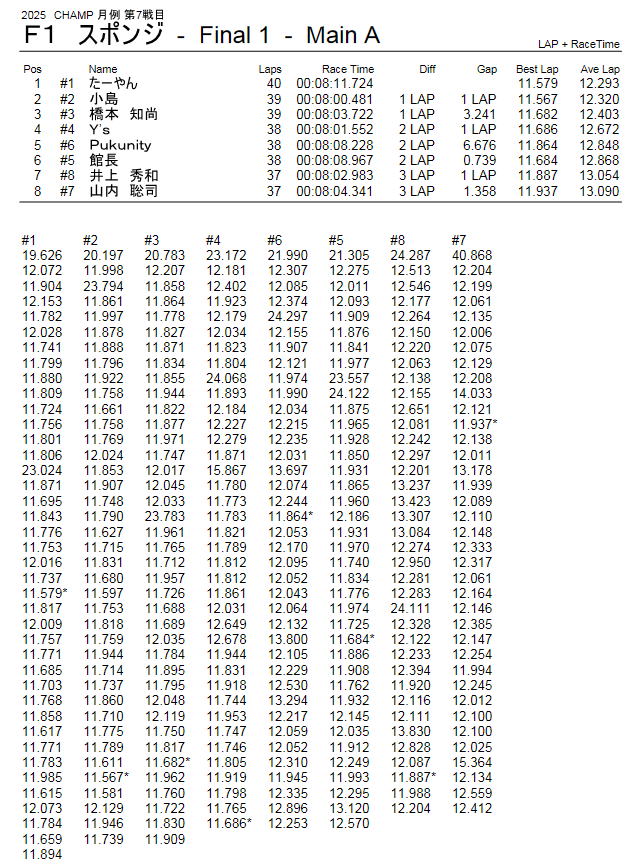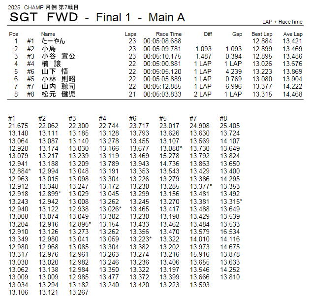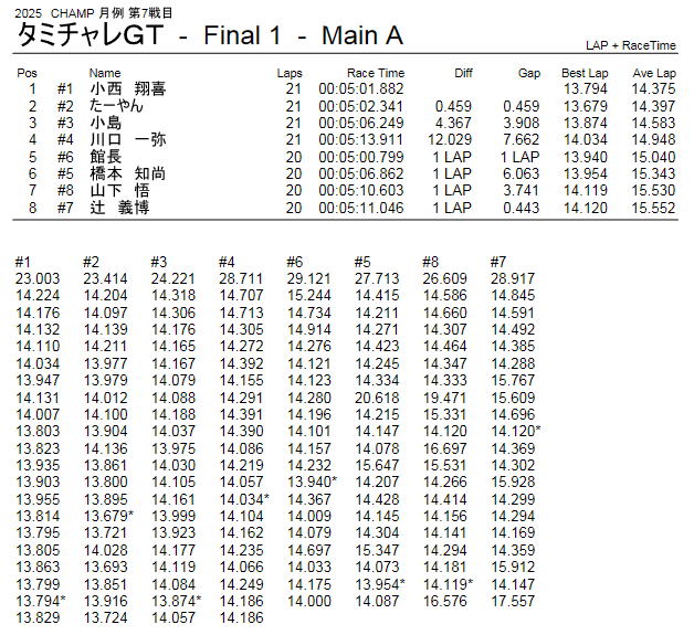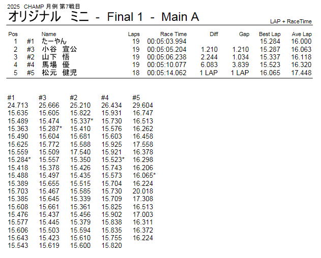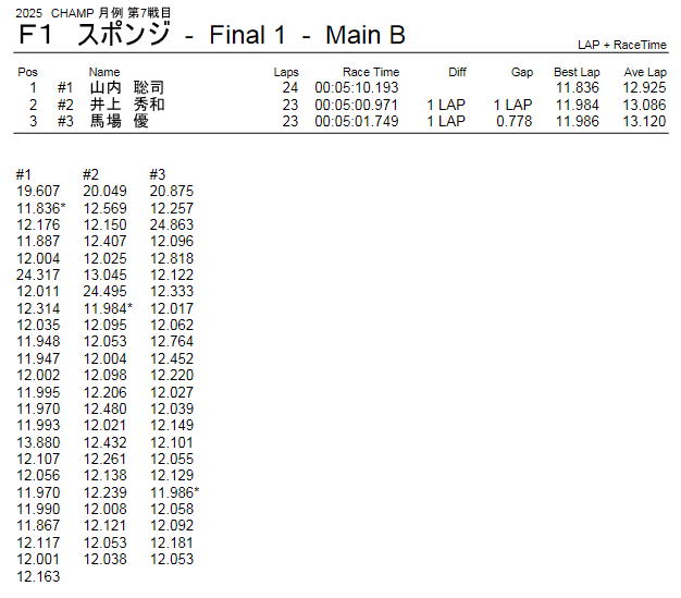 2025年9月21日 CHAMP 月例 レース 第7戦目