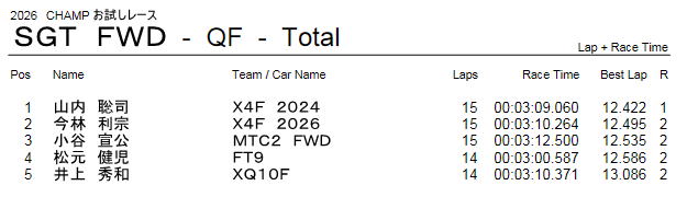 SGT FWDクラス レース結果