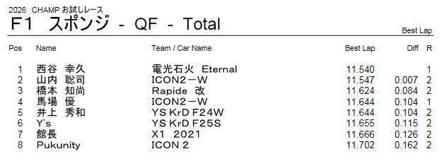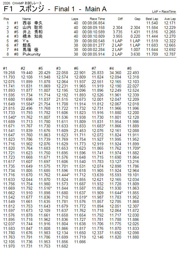 F1 スポンジクラス レース結果