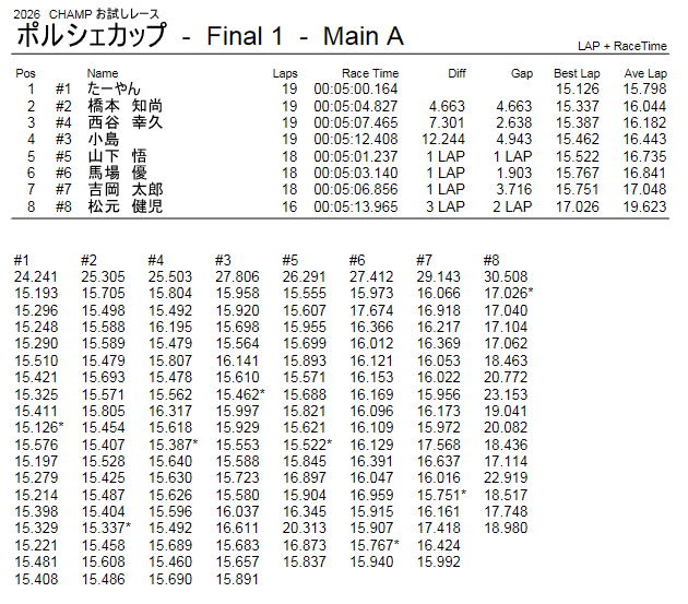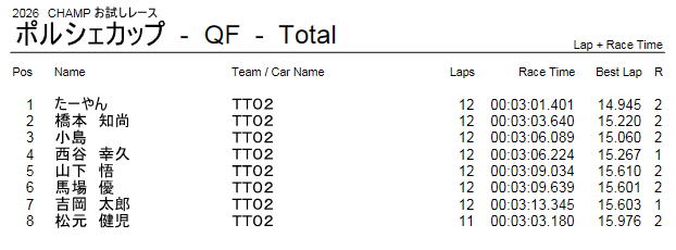 お楽しみクラス (ポルシェ カップ) レース結果