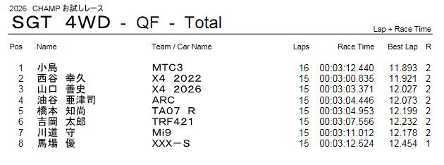 SGT 4WDクラス レース結果