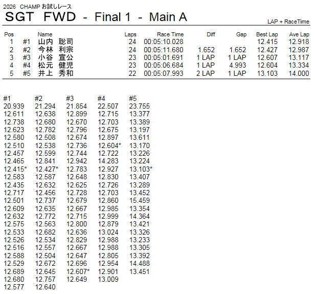 SGT FWDクラス Aメイン TOP.3