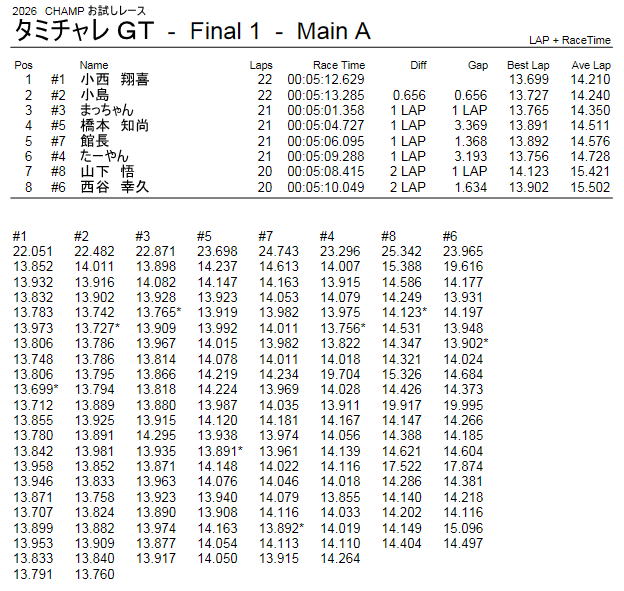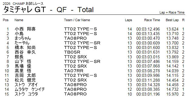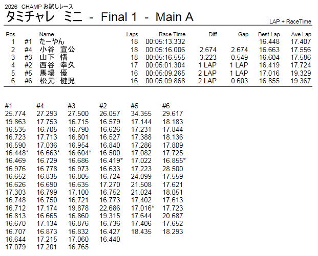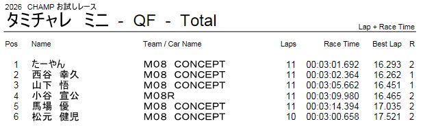 タミチャレ ミニクラス レース結果