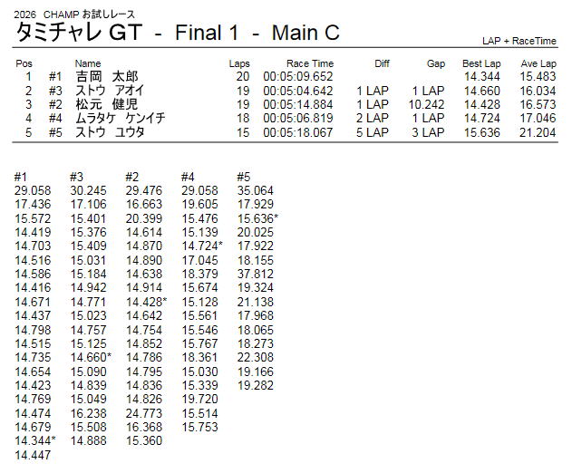 タミチャレ ミニクラス Aメイン TOP.3