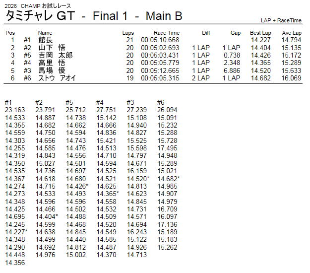 タミチャレ GT Bメイン
